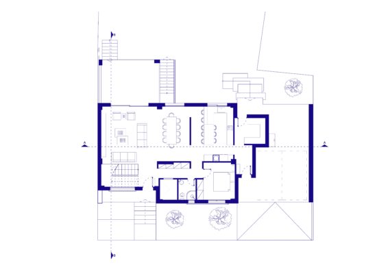 It’s about a two-story house, designed to combine comfort, functionality and a direct connection with the surrounding space. On the ground floor, the main living areas – living room, dining room and kitchen – are developed with an open layout that promotes communication and the flow of natural light. Additionally, a utility kitchen with direct access to the garden leads to a covered outdoor area, ideal for use as a dining area in the summer months. On the same level, there is also a guest bedroom for the comfortable accommodation of guests.